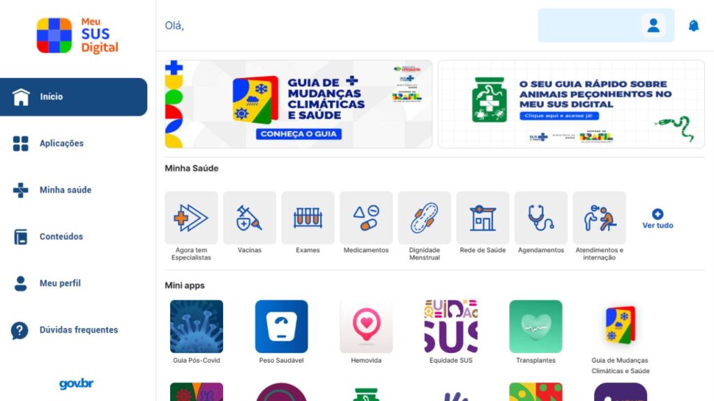 1️⃣ Acesse a Plataforma: Abra o aplicativo em seu smartphone (Android ou iOS) ou entre pelo site oficial Meu SUS Digital.